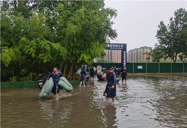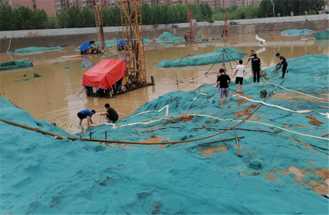 保安全降损失。7月20日,降雨持续增大;21日,暴雨仍在继续,郑州市多次发布暴雨红色预警;交通受阻、信号中断、电压不稳等不良情况陆续发生,工地防汛压力骤然加大。面对洪水肆虐,基建人闻“汛”而动,全员坚持工地一线,全面排查防汛隐患风险点,以最严措施、最严纪律、最严作风,全力做好在建工程防汛安全。在建工程现场,依照防汛应急响应的方案,全面投入防汛工作。组织人员关停了所有机器,关闭非必要电源,用雨布遮盖用电设备,严防漏电事故发生;建立防汛墙,防止雨水灌入低洼区域;选派人员前往楼顶,及时疏通排水口,确保排水顺畅;地下室放置多台潜水泵、场地外开挖排水沟进行引流,24小时不间断抽排雨水。通过一系列措施,最大限度降低建设损失,保证工程基坑和主体结构安全,确保无安全事故发生。