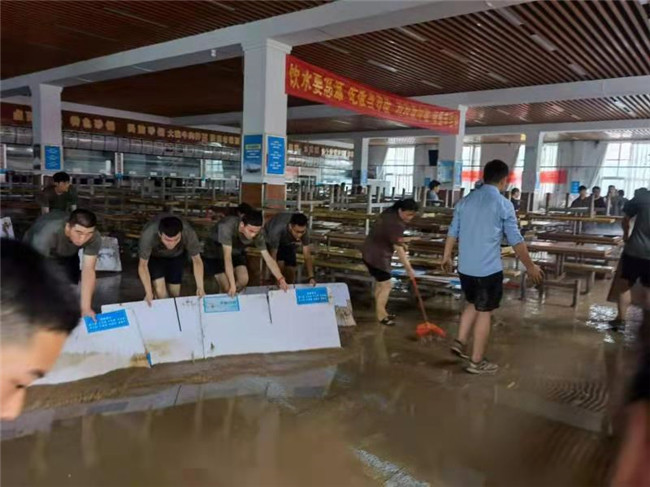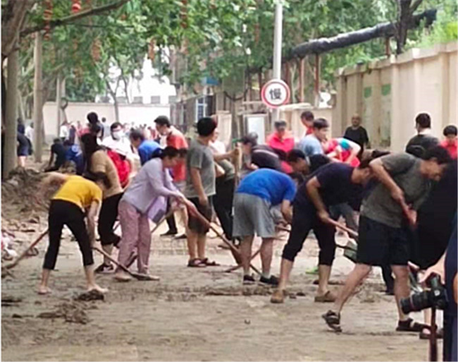 师生转危为安。21日早晨,东明校区积水尚未退去,淤泥沉积严重。王浩然、张莹再次前往校区内各处了解受灾情况,在外部物资无法进入的情况下,积极协调保卫处、后勤服务中心等部门,自发组织进行校园排水、道路清淤等工作,学校餐厅利用现有资源,迅速制作应急食品,保障学生基本生活物资供应,保证正常生活秩序。在学校党委的统一部署和安排下,东明办积极组织、协调、配合学校各部门、各单位开展了河南省第二届学生军事训练营100余名军训官兵、广大教职工志愿者清理道路垃圾、淤泥等系列防汛救灾活动,食堂、宿舍楼、道路上,随处都能看到大家挥洒汗水的身影,在广大师生争分夺秒、分秒必争,团结协作、奋力拼搏下,东明路校区积水已清理完毕,路面焕然一新,各场地整洁干洁,全力保障东明校区的基本稳定,降低了灾情损失,为后续救灾防汛工作的开展奠定了坚实基础。“面对汛情,作为一名党员,必须排除万难、冲锋在前,把师生的生命财产安全放到第一位,坚决做到越是艰险越向前!”持续奋战了好几天的王浩然、张莹异口同声地说道。(魏豪 姚孟 容全星)