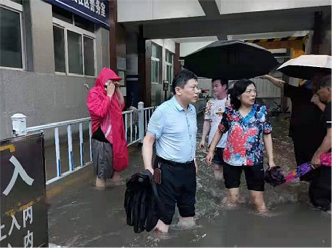 灾情就是命令。2021年7月20日,郑州市持续特大暴雨,单小时降雨量突破历史极值,河南中医药大学东明路校区防汛救灾形势极为严峻。学校党委高度重视,迅速对做好防汛救灾工作作出部署安排,校党委书记别荣海、校长许二平等校领导在第一时间冒雨到东明路校区防汛救灾一线,实地察看指导防汛救灾工作,亲切看望慰问师生,鼓励大家一定要众志成城、排除万难、共克时艰。