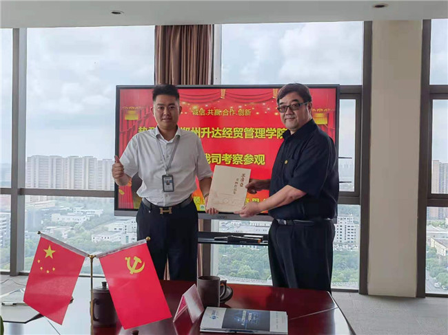 7月20-21日,应苏州国顺教育科技有限公司邀请,郑州升达经贸管理学院执行董事王新奇、校长郭爱先、董事会秘书兼科研处处长杨存博、发展规划处处长沈定军一行四人赴该公司进行实地考察,商谈校企合作事宜。双方就实验室建设、企业人才需求、学生实习就业等方面展开坦诚交流,下一步将就合作细节进行认真磋商。