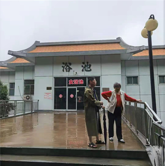 董事长王淑芳在副校长张其武陪同下查看校园汛情