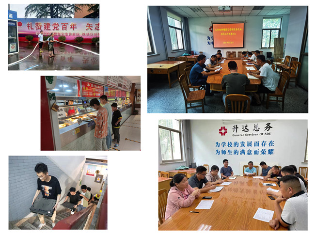 总务处牵头学校各项灾后恢复重建工作有序开展:事务科组织人员进行道路清洗、垃圾清运、防疫消杀、协助转移被淹物资、做好水电保供;伙食科克服重重困难保障全校各单位、各校区饮食供应和安全;营缮科召开灾后重建布置会、组织专业人员摸排建筑受损情况、对墙体建筑排险加固、对坍塌处进行抢修、对积水严重工地和建筑进行抢险;保卫科在土基松软、道路塌方、树木倒伏、沿湖等重点区域设置警示警戒,通过各种有效途径提醒留校师生远离危险区域,对学校各大门口淤塞道路进行清理;保管科组织人员清理仓库、抢修抢救受灾物资、保障全校灾后重建物资供应。