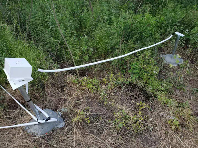 栾卢高速K67左侧边坡(处于六标段施工范围内)位于水流汇集的沟口区域,雨季汇水较多,坡体含水丰富,监测系统施工初期坡顶便出现了近圆弧形裂缝,长约150m。2021年5月下旬,交院技术集团在栾卢高速滑坡高风险点(K67左幅)布设自主研发的“通导遥+基础设施地质安全监测预警系统”,实时监测边坡变形情况。