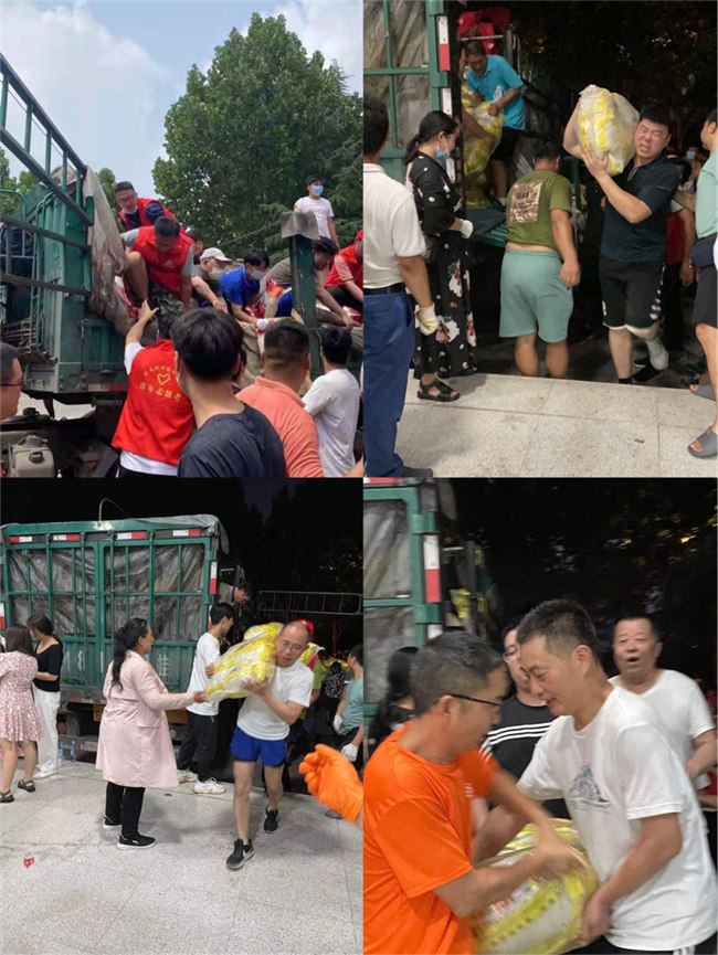 就是这样,河南牧业经济学院英才校区防汛救灾志愿服务队共参与志愿服务600多人次,累计装卸食用油、饮用水、方便面、火腿肠、大米等货物30多车,435吨。