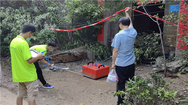 在对村口岔路进行检测时,仪器屏幕上的电磁波反射呈现较大波动,检测人员判定该处有严重的地下空洞。