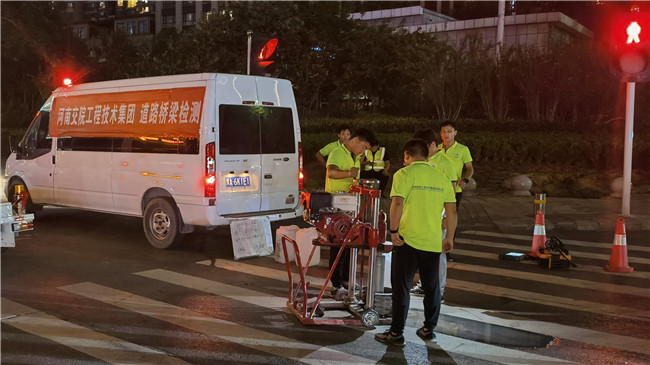 不论是趁着月光在路口进行地下空洞病害检测,还是顶着烈日对退水路段进行弯沉检测,亦或是驾驶高空作业车对路堑及上跨高速分离式立交进行水毁状况检测。24小时待命,接到指令第一时间行动,全面开展隐患排查整治,有效化解隐患风险,保障民众的人身财产安全。哪里有需要,哪里就有“交院技术”的身影!