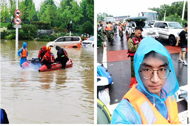 针灸推拿学院2019级学生马欣听闻中牟县阜外华中心血管医院及其附近的小区受灾严重后,和朋友一起多方筹措8艘皮划艇和20多件救生衣紧急前往支援。几天的时间里,他们和军队及其他救援队一起,给小区居民运送物资,解救被困群众。即使暴雨如注,疲惫不堪,饥肠辘辘,他却从不退缩,始终坚守在抗洪一线。作为一名学生党员,他让党旗在人民需要的地方高高飘扬,充分发挥了党员的榜样示范作用。