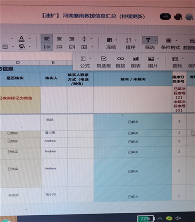 护理学院2020级护理本科二班俞佳,面对突如其来的暴雨灾害,她积极参与河南所需救援人员信息登记,同时负责搜集待救援人员信息、负责、审核工作,虽然不能走上防汛救灾的一线,但是通过线上志愿服务工作,俞佳贡献着自己的一份力量。