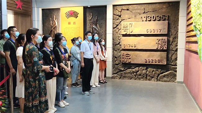 下午,培训班一行来到大别山干部学院,参观了鄂豫皖苏区首府革命博物馆,瞻仰鄂豫皖烈士陵园,接受红色教育。