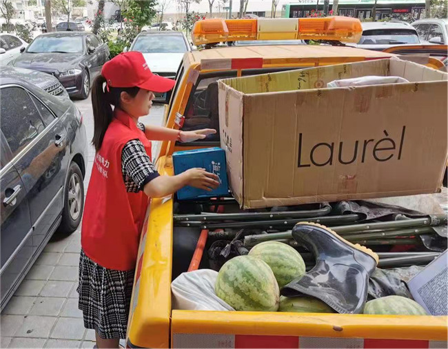 ——“使命在肩”相映“红色”昂扬。作为共产党员服务队的一员,着装上志愿者服装,就要将共产党员的光荣形象展现在服务河南电力抢险救援后勤保障服务的光荣战场。在此期间,接到河南省电力公司送来物资十几批,接到河南省电力医院送来医疗物资十余批,接到金水区街道办、社会爱心人士等社会单位捐赠食物和衣物十余批,一批批的物资,一件件的慰问品。对王丹来说,搬运是最难的事儿,有时候一批物资就是100箱,她和现场驻地的志愿者,经常顶着大太阳饿着肚子坚持搬运完,只会救援人员回来能及时补充物资保证救援人员的需求。作为一名志愿者,她是现场最鲜艳的颜色,酒店停水了,她联系,物品不够了,她去申报,急需物资送不到,她去沿街寻找超市自掏腰包给前线人员购买,就是一个十足的大管家,事无巨细,都在脑子里,都得在手心里。就是这样的行动和作为,正是这份责任和使命,让共产党员服务队的“志愿红”颜色更亮。