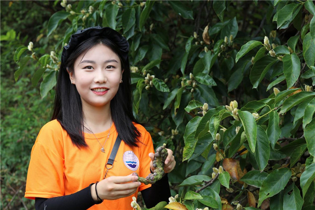 在辛夷种植户王付顺的带领下,“萤火虫”调研队成员深入辛夷种植区,队员们通过望、闻、问、采摘等一系列方式不断加深对这一种药材的认识。在王付顺的介绍下,调研队队员了解到辛夷这一中药材干、湿皆可售卖,因此几乎没有出现过积压的情况,采摘期一天至少可摘四五十斤。湿辛夷可卖到5、6块一公斤,而烘干过的辛夷最高可卖到40元一公斤。大部分农户都以售卖湿辛夷为主,商贩上门收购;干辛夷则由各大药房直接收购。在采摘过程中,队员们惊喜的发现树上有形状怪异的果子,王付顺向大家介绍这就是辛夷的果实俗称“龙瓜”,我们日常生活中所使用的玉兰油就是从它的内部提取而来。王付顺对队员们说“辛夷又称紫玉兰,但辛夷花与玉兰花也有所不同,辛夷花的花朵较小,花瓣带有略微的紫色;玉兰花朵为白色,叶片颜色较深。”