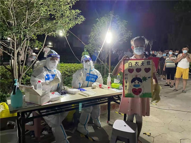 “厚重的防护服穿在身上,就是一份沉甸甸的责任。作为共产党员,我不能辜负组织的信任,百姓的期盼。”一位在核酸采集点的工作人员,这样说道。