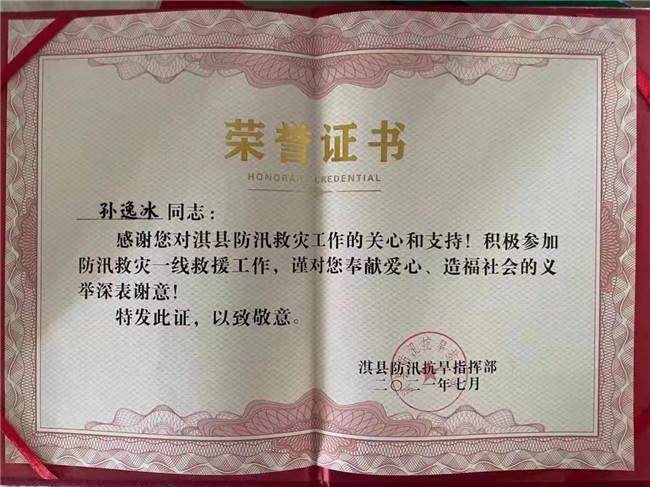 “拿出部队作风,坚决完成任务。兄弟们,退伍不褪色!”孙逸冰的这条回复在淇县退役士兵志愿救援队群内得到一致赞同。7月20日以来,暴雨席卷河南,郑州、新乡、鹤壁等多地发生内涝,汛情严重威胁当地人民生命与财产安全。孙逸冰踊跃参加防汛救灾工作,战斗在防汛抢险的最前线。