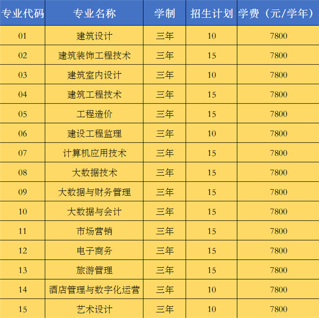 林州建筑职业技术学院(6359)2021年对口专科征集志愿一览表