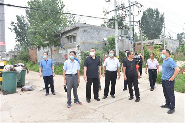 8月13日,新乡学院校领导班子在党委书记尚宝平、院长刘兴友的带领下再次来到闳夭村视察工作。尚宝平表示,要尽快协调中国移动、联通公司,抓紧时间对村内监控设施、网络设备进行维修,早日恢复网络,持续改善闳夭村村民居住条件。同时对养殖场、村外污水坑、农田进行重点喷洒消杀,力争早日做好补种复耕工作。