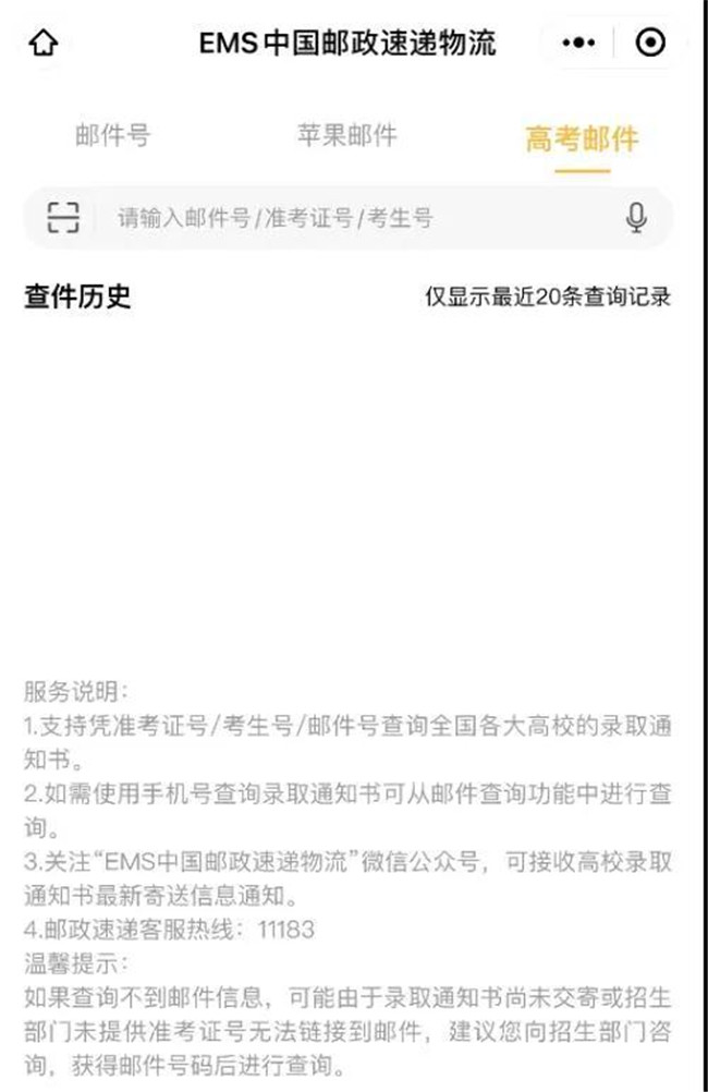 通知书状态简单可查,利用微信查询:进入微信公众号,并关注:中国邮政速递物流,公众号关注后,输入“准考证号码”或“手机号码”进行查询