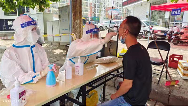 “有护士中暑了,需要紧急支援!”,8月9日中午,护士长吴凤玲接到北院区护理部主任裴杰的电话。“我去!”刚从乡镇检测点返回的吴凤玲二话没说,立即投入到新的战斗。
