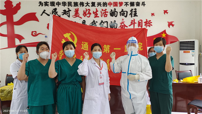 8月初,新冠疫情防控工作陡然进入紧张状态。作为医疗救治定点医院,通许第一医院紧急行动,院长王兵站亲自挂帅靠前指挥,执行院长马九强、业务院长郭海龙分别负责两个院区,迅速筑起预检分诊、发热门诊、发热哨点、感染隔离病房四道防线。院长王兵站向全院医护人员发出指令:“取消节假日,全员齐上阵,坚决打赢疫情防控阻击战,捍卫全县人民生命安全。”