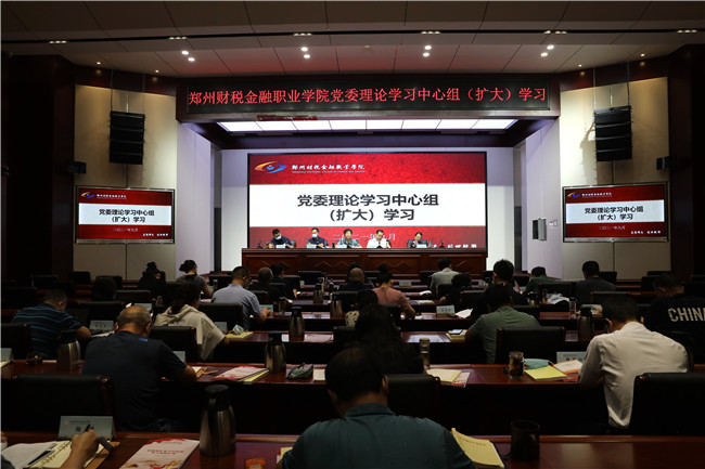9月14日,郑州财税金融职业学院党委理论学习中心组在厚德楼二楼报告厅进行(扩大)学习。党委班子成员及中层正职干部参加会议。党委书记王霄鹂主持会议。
