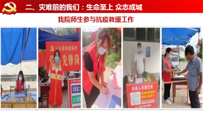 每个时代都有青年乘风弄潮,勇担重任。革命年代的何叔衡、刘仁静、江姐、董存瑞和爬雪山过草地的红军战士们,是不怕牺牲,英勇斗争的中国青年,他们为实现救国救民抛头颅,洒热血,为新中国的成立做出了巨大的贡献;建设时期的邓稼先和王进喜,是坚守理想、矢志报国的中国青年,他们坚守理想,矢志报国,为共和国的事业打下了坚实的基础;改革开放时期的胡福明和严宏昌,是解放思想、锐意进取的中国青年,他们冲破禁锢思想的束缚,为共和国的发展注入源源不断的活力;新时代全国脱贫攻坚先进个人黄文秀,硕士研究生毕业后,主动请缨到贫困村担任驻村第一书记,带领群众发展多种产业,为村民脱贫致富倾注了全部心血和汗水。还有前段时间面对突如其来的暴雨和新冠疫情,一个个青年闻令而动、挺身而出、逆流而上,主动请缨到一线....历史证明,在追赶世界历史大势的竞争中,中国青年丝毫不输于任何一个民族的青年。王书记用生动鲜活的例子使同学们深切体会到青春力量是如何创造青春中国的,只有怀揣这份家国之爱、人民之爱,有一分热,发一分光,才能汇聚成驱动中原更加出彩、中华民族伟大复兴的蓬勃力量。