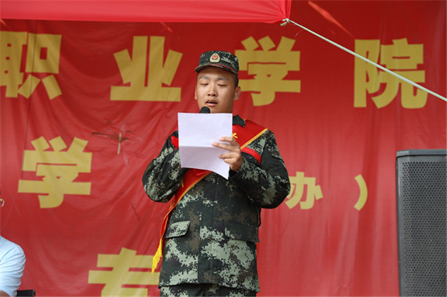 会计学院施政同学代表入伍新兵发言,他结合母校对自己的培养和引导,阐释作为一名大学生携笔从戎报效祖国的万丈豪情,并代表全体新兵作出庄严承诺。