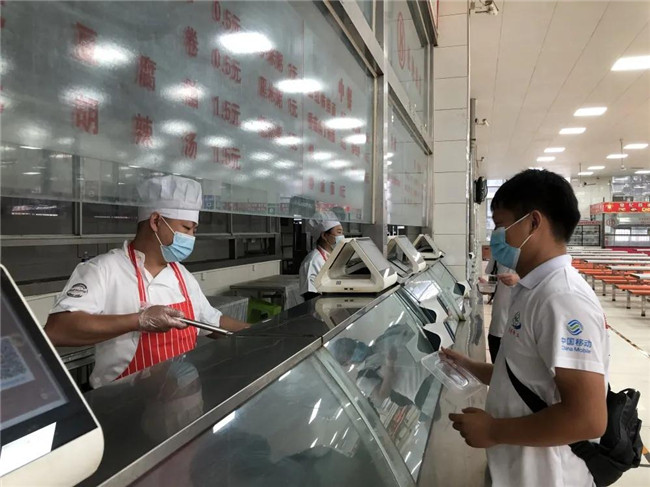在餐厅北门口设置测温点,安排专人负责维持餐厅秩序。学生经洗手、测温、消毒后有序从第一餐厅北门进入,进入餐厅后学生按地面标识线,沿同一方向顺序移动,购买餐食后有序从东门出餐厅。