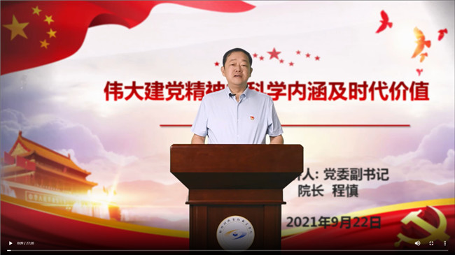 9月22日,以《伟大建党精神的科学内涵及时代价值》为题的线上思政课如期开讲,郑州财税金融职业学院21级全体新生在“云端”集体学习。本节思政课由该院院长程慎主讲。