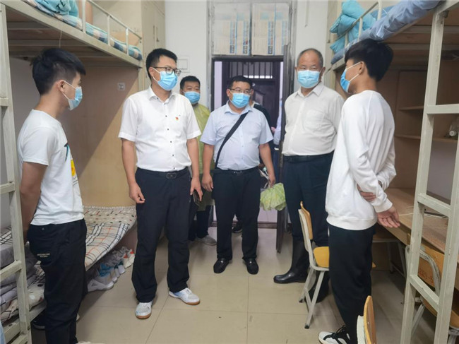 校领导一行仔细察看新生进校行李消杀、体温检测、身份查验、扫码验证、核酸检测、签到注册等流程,了解各站点实时情况,对一线工作人员进行了亲切慰问,并要求相关部门要提高站位、高度重视、落实责任,切实加强疫情防控措施,规范新生入学工作各环节流程,为新生提供优质保障,确保新生入学报到工作安全、圆满完成。