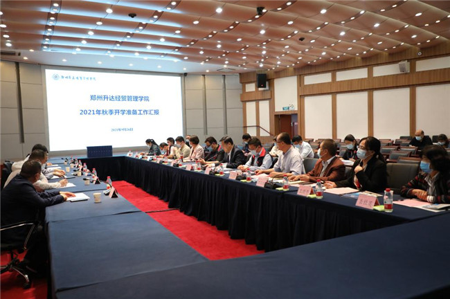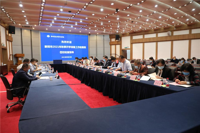 9月26日上午,新郑市教育园区管委会招商引资局局长张春旺,新郑市卫健委分包学校负责人赵耀辉、赵振伟、新郑市市场监管局副所长范伟强、新郑市教育防控部第二督查组组长郭建伟、龙湖镇小乔村党支部书记赵留喜一行6人,莅校检查指导郑州升达经贸管理学院2021年秋季学期开学准备工作。校领导王新奇、郭爱先、张金安、张其武及各工作专班组长、相关工作人员参加了汇报会。汇报会由校办主任朱永恒主持。