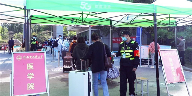 时行金令,律应清商。2021年10月11日至15日,河南中医药大学校园迎来了一批又一批朝气蓬勃的面孔,来自祖国各地的1.2万余名高年级学生和六千余名2021级新生来到美丽的校园,满怀期待、满心喜悦,即将开始崭新的大学生活。