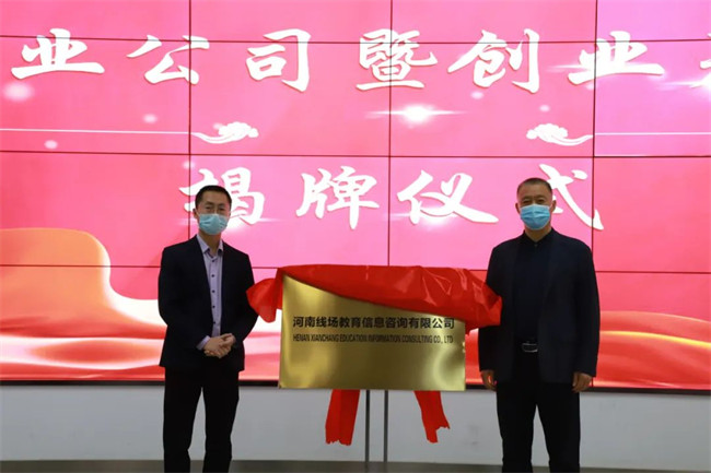 2022年4月19日上午,河南机电职业学院大数据学院举行双创公司暨双创基地揭牌仪式。学校党委书记张震、校长王本亮、副校长王发清、副校长谷献晖、企业代表熊威出席仪式。学校相关行政部门负责人、部分二级学院代表、大数据学院全体教职工以及项目团队学生代表等参加揭牌仪式。