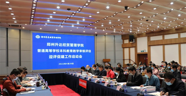 根据教育部普通高等学校本科教育教学审核评估的要求,郑州升达经贸管理学院拟于2025年接受教育部普通高等学校本科教育教学审核评估。为做好迎评促建工作,4月28日下午,学校在国际会议厅召开了本科教育教学审核评估迎评促建工作启动会。以本次会议为标志,校“迎评促建”工作正式拉开帷幕。执行董事王新奇、校党委书记雷霆、校长张欣、副校长兼教务长吴益民、副校长兼总务长张其武出席,各职能部门主管(副主管)、各院部院长(主任)和书记、各院部副院长(副主任)及相关工作人员参加本次会议。会议由雷霆主持。