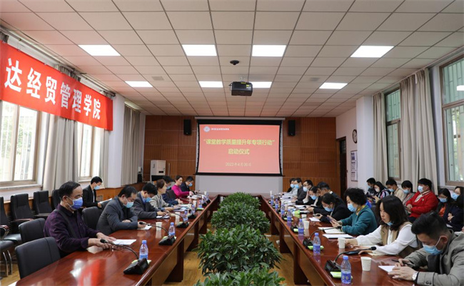 为深化教育教学改革,发挥好课堂教学的人才培养主渠道、主阵地、主战场作用,切实提高课堂教学质量和育人水平,郑州升达经贸管理学院决定开展“课堂教学质量提升年专项行动”。4月30日下午,“课堂教学质量提升年专项行动”启动仪式在行政楼第二会议室举行,副校长兼教务长吴益民、质量监测与评估中心副主任罗秉鑫、教务长助理兼教研科科长赵悦然、课务科科长袁向阳、各教学单位院长(主任)、副院长(副主任)和教学秘书出席了本次启动仪式,会议由赵悦然主持。