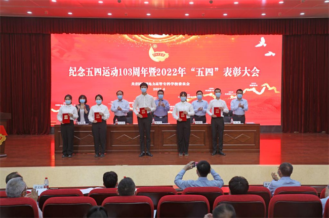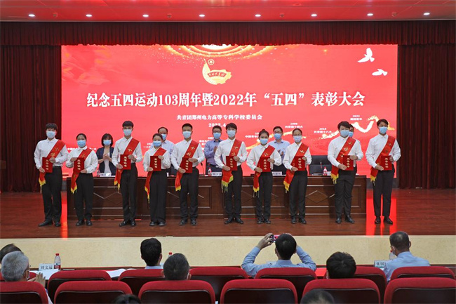 在五四青年节即将到来之际,郑州电专纪念五四运动103周年暨2022年“五四”表彰大会于4月26日下午在东阶梯教室隆重举行。学校党委书记杨义波,校长杨建华,党委副书记、副校长宗万伟,副校长黄鹏出席,会议由高级管理师周明霞主持。学校党委办公室、党委宣传部、团委、党委学工部(学生处)、招生就业处等职能部门负责人、各学院党总支书记、主管学生工作副院长、辅导员以及团员青年代表参加会议。