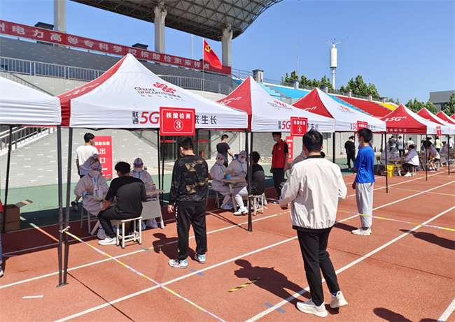 “全副武装”的工作人员训练有素,整个过程科学、规范、高效。在采集过程中,医护人员细心操作,师生员工努力配合,采样工作快速有序推进。