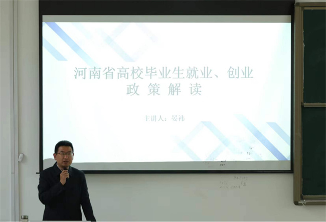 就业率和就业质量关系到学校声誉度和美誉度,是检验办学质量和成效的重要指标。为贯彻落实党中央、国务院“稳就业”、“保就业”决策部署,了解当前就业形势,明晰国家就业政策,助力首届毕业生顺利就业、高质量就业,林州建筑职业技术学院举办2022年就业创业大讲堂系列讲座推出了“2022年就业创业大讲堂系列讲座”。5月11日下午,在2号教学楼2225教室举行了主题为《河南省高校毕业生就业、创业政策解读》的讲座,特邀党委副书记、纪委书记、副校长晏祎担任主讲。