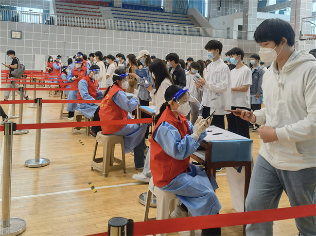 校园共同守护,战“疫”齐心协力。当晚10点40分,微信公众号发布市疫情防控指挥部关于在次日开展新冠病毒核酸筛查的通告。由党政办公室、组织人事处、宣传部、财务处组成的志愿服务第一小分队立即传达任务、安排部署、定人定责,连夜做好各项准备工作,确保检测工作高标准展开。