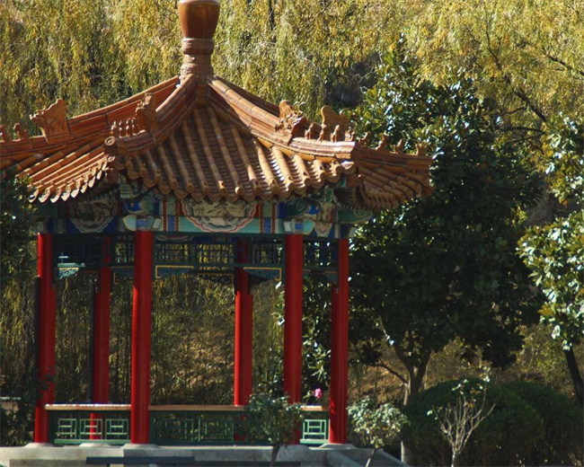 飞檐的悦动,红柱的庄严,流露着达园的典雅庄重。