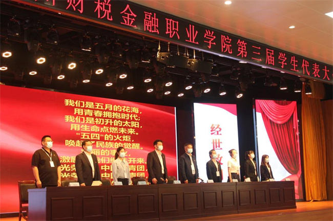 5月15日下午,在庄严的国歌声中,郑州财税金融职业学院第三届学生代表大会在西校区三楼报告厅召开。学院党委书记王霄鹂、院长程慎、党委副书记来栋梁、副院长施长春,各院系党支部(总支)书记、相关职能部门负责同志、以及各院系45名学生代表出席大会。会议由副院长施长春主持。