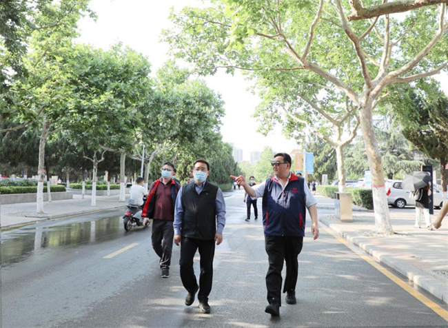 黄卫东一行详细了解学校当前疫情防控工作安排,重点了解校园管理、学生离校返校方案、重点区域防控措施等工作,仔细询问相关情况,并与学校主管疫情防控领导交流工作思路。