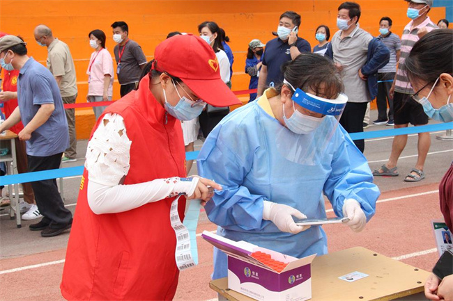 “请同学们排好队,注意间距,依次检测!”“请大家提前准备好身份证,感谢配合我们的工作!”“请大家戴好口罩,做好个人防护!”在河南林业职业学院操场的核酸检测场地,志愿者们在不停地向大家提醒,有的在出入口提醒大家按序排队,有的在现场维护秩序,有的在协助扫码登记……在校园最需要的时候,在需要的地方,就一定能看到身穿红马甲的党员志愿者身影。