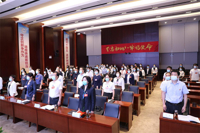 学院第一届职工暨工会会员代表大会第四次会议在庄严的《国际歌》歌声中胜利闭幕。(宁爰懿)