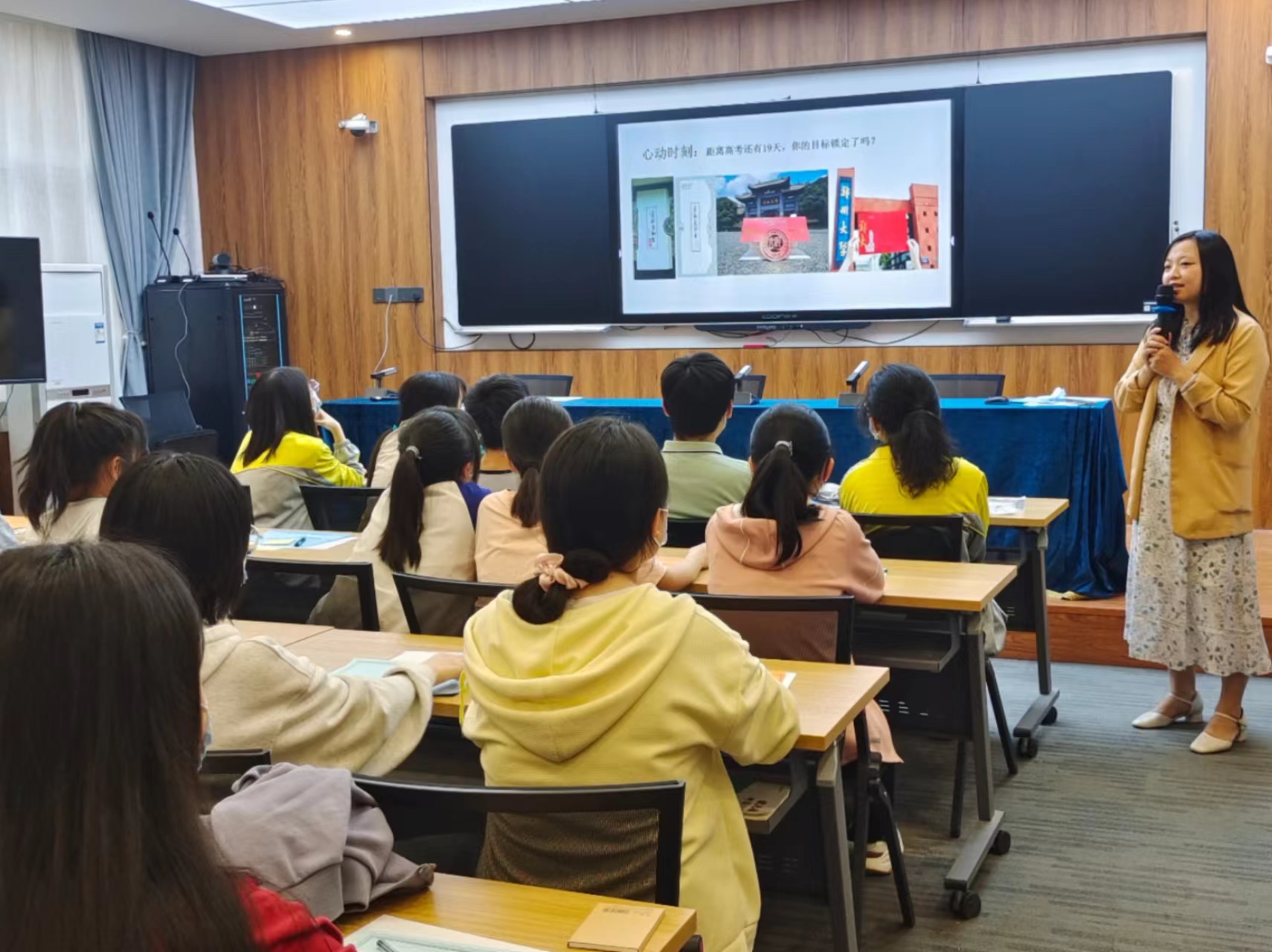 史老师给大家分享了三十六中历届高考优秀学生的备考经验:例如“放平心态”“学会放松”“坚持不放弃”“投入感”“夯实基础知识”“积极的心理暗示”等。之后又精心给孩子们传授了情绪调试和时间管理的方法,进而帮助学生在有限的时间里以更放松的心态和快乐的心情提高学习效率。