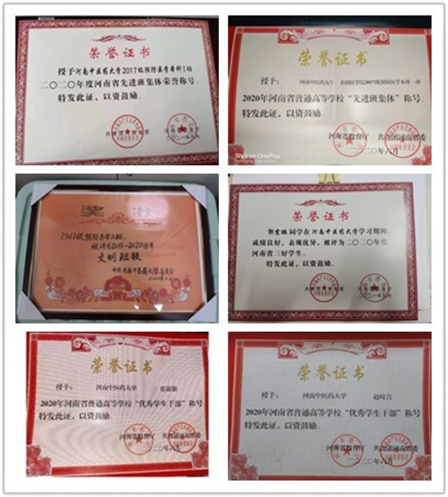 全面发展,多项评比中斩获佳绩。河南中医药大学2022届预防医学专业的毕业生从2017年入学至今,在全体同学的共同努力下共获得省级先进班集体一次,校级先进班集体3次,3人在国家级科研比赛中获奖,先后涌现出省级优秀毕业生2人,省级三好学生2人,省级优秀学生干部3人,其他校级奖项若干项,他们以积极进取的精神风貌,用优异的成绩,为学弟学妹们树立了良好的榜样。
