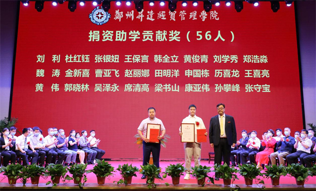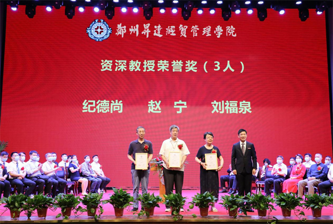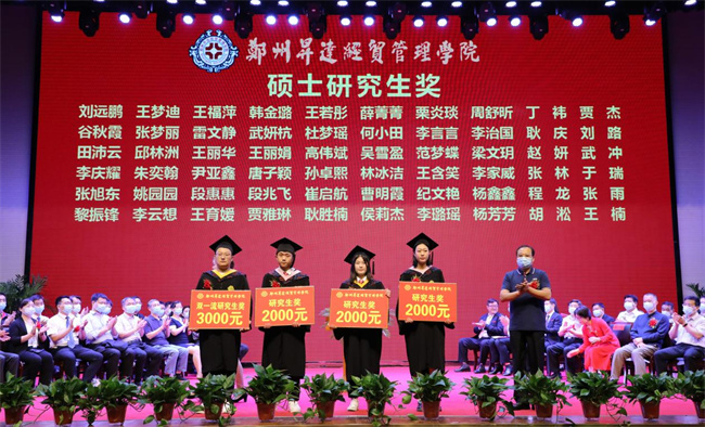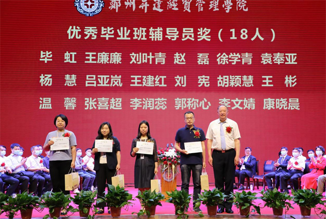 吴益民宣读了《郑州升达经贸管理学院学位委员会关于授予2022届普通本科毕业生学士学位的决定》和《郑州升达经贸管理学院关于表彰710名2022届毕业生的决定》。校长张欣为毕业生代表颁发毕业证书、学士学位证书并扶正流苏。嘉宾、校领导为学业成绩第一名代表,省、校级优秀毕业生和考取各类证照的优秀毕业生代表,资深荣誉教授,优秀毕业班辅导员,捐资助学贡献奖代表等颁奖。
