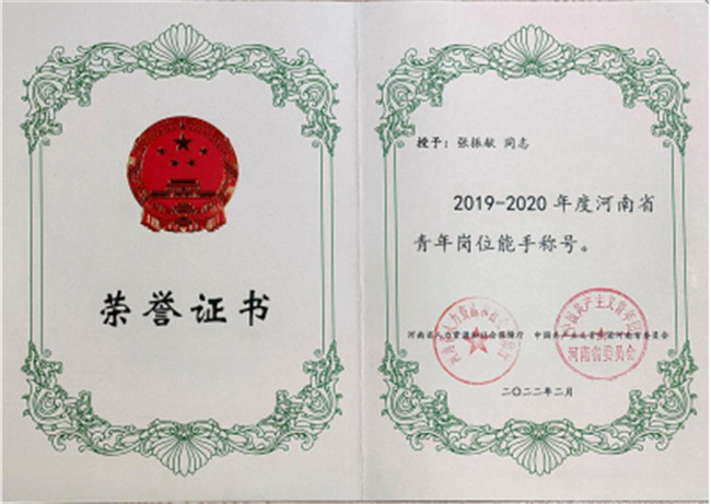 近日,河南省人社厅、共青团河南省委联合下发《关于命名表彰2019-2020年度河南省青年文明号和青年岗位能手的决定》(豫人社发【2022】8号)。郑州电力高等专科学校电气工程学院张振献、何永涛两位教师荣获“河南省青年岗位能手”称号。