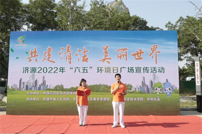 6月2日上午,济源职业技术学院联合济源示范区生态环境局举行2022年“六五”世界环境日广场宣传活动,共同庆祝第51个世界环境日。活动以“共建清洁 美丽世界”为主题,20余名“微公益”生态环保协会志愿者为广大市民宣传环保知识。