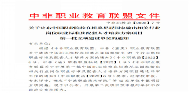 近日,中非职业教育联盟公布了中国职业院校在坦桑尼亚国家输出相关行业岗位职业标准及配套人才培养方案项目第一批立项建设单位评审结果。郑州电力高等专科学校电气工程师岗位标准及配套人才培养方案成功入选第一批立项建设单位名单。