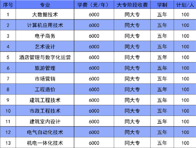 注:专业和招生计划以省教育厅公布为准,具体收费标准以发改委公布为准。
