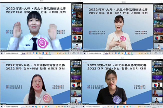 2022年是中韩建交三十周年,也是“中韩文化交流年”。6月24日,由河南省人民政府外事办公室、中国驻釜山总领事馆、河南省教育厅、韩国驻武汉总领事馆、韩国大邱广域市、韩国庆尚北道共同主办,郑州轻工业大学与韩国大邱加图立大学承办的2022河南省—韩国大邱庆北地区汉韩语演讲比赛决赛暨颁奖仪式通过线下、线上相结合的方式成功举办。中国驻釜山总领事馆副总领事涂敬昌、韩国驻武汉总领事馆副总领事柳寅植分别为本次大赛致辞。该校国际合作与交流处负责同志应邀出席了本次比赛。